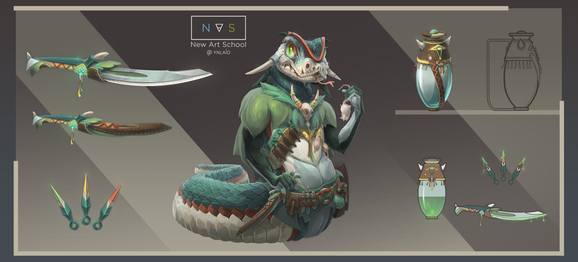 220$ - Concept list with 3-5 view + portrait + weapon or other accessories + PSD